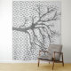 Esta tapeçaria simples, mas bonita, mostra uma árvore de cabeça para baixo com folhas em queda que diminuem de tamanho à medida que caem no chão. O esquema de cinza e cor branca é perfeito para qualquer espaço, e a design única irá adicionar um toque especial a qualquer sala e trazer alegria àqueles que amam a natureza e as árvores.