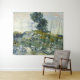As Rochas. Vincent van Gogh. Paisagem em tons verdes-azuis frios. Há pedras no primeiro plano. No meio há um monte com uma árvore e pedras. O céu está nublado. Reprodução de famosas imagens de arte no dominio público.