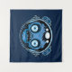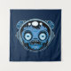 Imagem vetorial de um astronauta zombie com grandes olhos vestindo um capacete espacial com um escudo de vidro rachado em tons de azul. Etiquetas: astronauta, cosmonauta, capacete, zombie, espaço, astrônomo, monstro, cadete, cadete, morto