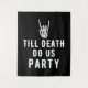 Fundo preto 'Até que a Morte Nos Separe' com uma mão de esqueleto. Decorações de festa assustadoras para um chá de noiva, despedida de solteira, festa de casamento ou qualquer evento. Certifique-se de visitar nossa coleção para ver mais itens coordenados que combinam com este design para o seu evento especial.