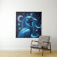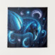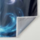 Esta design apresenta uma cortina azul cósmica com um fundo galáctico.