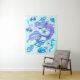 Linda, esquisita, roxa e turquesa Criatura do Oceano Fada, esta Sereia é Swimmingm e parece brincar, cercada por Starfishes, conchas marinhas, algas, Fishes, e segurando um pequeno cavalo marinho em sua mão; todos os elementos são montados para compor um padrão sem falhas. Ilustração vetorial Copyright BluedarkArt.