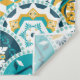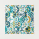 Padrão geométrico do azulejo Azulejo de Lisboa, círculos retrorreflectores portugueses ou espanhóis, turquesa sem costura mediterrânica e design amarelo. Matérias têxteis ornamentais