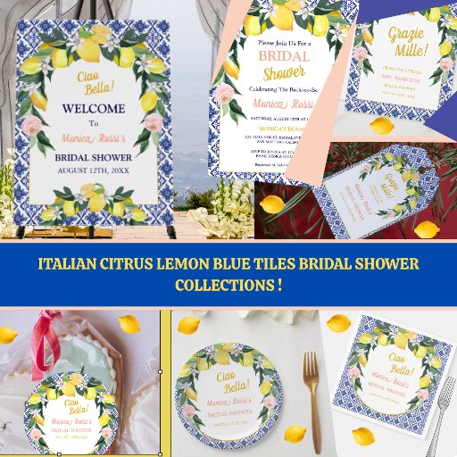 Italian Citrus Lemon Blue Tiles Bridal Shower Criado por Romana Rony