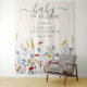 This sweet and simple baby shower backdrop is perfect for welcoming a little one with a touch of nature. The design features the title "baby in bloom" in a charming script and serif font and the bottom of the signage is adorned with a beautiful field of hand painted watercolor wildflowers, adding a touch of color and whimsy. The template wording is fully customizable so you can easily add your own details, making it a truly unique keepsake for the special day and is sure to impress your guests and set the tone for a beautiful and memorable baby shower.