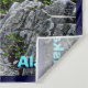 Uma pintura digital de uma águia careca empoleirada em uma torre de madeira derivada lavada na costa rochosa do Alasca; montanhas ficam à distância. O texto personalizável lendo "Alaska" também é exibido.