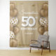 Tapeçaria de fundo de banner de balões brancos e dourados falsos aniversário de 50 anos, entre em contato comigo para outra IDADE, Rosas Cor de Rosa ©
