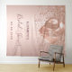 Para um chá de noiva elegante. Um fundo metálico falso dourado-rosado. Decorado com pingos brilhantes cor-de-rosa, efeito de tinta pingando, gotas brilhantes e balões. Personalize e adicione o nome. Perfeito como um banner de boas-vindas ou como decoração para a festa. Pode ser usado como um banner de boas-vindas, decoração de parede para o chá de noiva ou como um fundo para fotos.