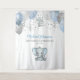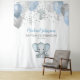 Dê as boas-vindas aos seus convidados com esta adorável tapeçaria de batismo com elefante azul e cinza com balões, confetes e cruz prateada. Fácil de personalizar para o seu evento clicando em "personalizar".