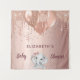 Para um chá de bebê elegante. Um fundo metálico falso rosa dourado. Decorado com rosa dourado, gotas de tinta rosa, efeito de tinta pingando, serpentinas de festa, balões e uma adorável elefante bebê menina. Personalize e adicione o nome e uma data. Pode ser usado como uma faixa de boas-vindas, decoração de parede para o chá de bebê.