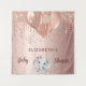 Para um Baby Shower elegante. Um fundo metálico falso de ouro rosa. Decorado com ouro rosa, pingos cor-de-rosa, efeito de tinta pingando, serpentinas de festa, balões e uma adorável elefante menina. Personalize e adicione o nome e uma data. Pode ser usado como uma faixa de boas-vindas, decoração de parede para o baby shower.