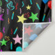 Balões de festa coloridos e estrelas em design de padrão negro de fundo.