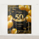Tapeçaria de balões pretos e dourados banner de estande de foto de aniversário de 50 anos, Contate-me para outra idade. Rosas Cor-de-rosa ©