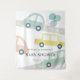 Esta tapeçaria de boas-vindas para chá de bebê de menino fofo apresenta um fundo branco com um carro azul com balões azuis e vários outros carros em cores pastel. Personalize-o para suas necessidades. Você pode encontrar produtos correspondentes na minha loja.