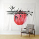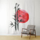 A parede pendurada mostra a silhueta de um bambu delicado em frente a um sol vermelho profundo no horizonte. Bambu representa a graça e a perseverança valorizadas no budismo Zen. O sol vermelho simboliza energia e poder, que são importantes para o iluminismo e o desenvolvimento espiritual no budismo Zen. A atmosfera calma e harmoniosa criada pela imagem lembra o espectador da prática da meditação no budismo Zen. O bambu no primeiro plano representa força e flexibilidade, enquanto o sol no fundo ilumina o caminho para a iluminação e a paz interior. Este muro pendurado serve como uma decoração inspiradora numa sala de meditação ou num jardim Zen, lembrando ao espectador que pratica os princípios do budismo Zen no seu dia a dia.