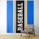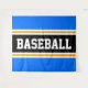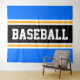 Este esportivo, design atlético, apresenta dentro de texto BASEBALL ousado, uma faixa preta larga realçada com faixas duplas brancas e amarelas contra faixas claras de fundo azul. O texto neste design pode ser personalizado.