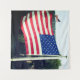 Esta tapeçaria tem duas bandeiras americanas pintadas nela.