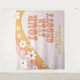 Banner de festa de 4º aniversário Retro Four Ever Groovy com dálias boho.