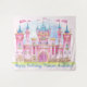 Banner de fundo de aniversário de princesa com um belo castelo em aquarela em um lindo fundo de aquarela. Este lindo fundo de princesa é facilmente personalizado com o texto de sua escolha.