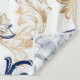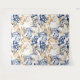 Elegant vintage vector pattern featuring flowing baroque-style floral scrolls in navy blue and gold on a clean white background, creating a classic, luxurious, and timeless ornamental design.