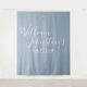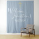 Pano de fundo moderno para cabine de fotos de batismo com uma elegante assinatura em letra dourada. Personalize com as informações especiais do seu batismo em letras douradas sobre um fundo azul poeirento. Criado por Thisisnotme©