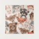 Beautiful seamless, tileable, watercolor pattern with woodland animals - deer, bunny, hedgehog, bear, owl and fox