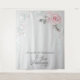 Ela Disse Sim! Propaganda de Foto de Casamento - use atrás da noiva e do noivo enquanto eles fazem seus votos, como pano de fundo para a mesa do livro de visitas, como fundo para o photobooth, ou atrás da mesa da festa de casamento. para a noiva e o noivo românticos. Folhas iridescentes prateadas e rosas sweetheart rosa e folhagens em um arco de casamento. Isso faz parte de uma coleção de papelaria de casamento com acessórios de casamento combinando. Design criado para a BarefootBride ™ © por WhimsicalArtwork ™
