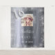 Uma tapeçaria de boas-vindas para uma festa de 16 anos, feminina e glamorosa. Um fundo metálico prateado falso decorado com brilho falso. Personalize e adicione uma foto de alta qualidade, nome e data. O número 16 é escrito com uma fonte estilo balão.