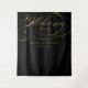 Tapeçaria de boas-vindas de casamento com texto em letra script em folha de ouro falso fancy. A palavra "bem-vindo" é uma IMAGEM produzida para parecer que tem um acabamento em folha metálica cinza, mas é impressa em tinta plana e não pode ser editada. Todo o restante do texto pode ser totalmente editado. Escolha o seu tamanho e personalize o texto, ou clique em "Personalizar ainda mais" para alterar a cor do fundo e o tamanho ou estilo da fonte.