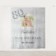 Uma tapeçaria de boas-vindas para uma festa de aniversário de 80 anos glamorosa. Um fundo metálico prateado falso decorado com pó glitter falso. Personalize e adicione uma foto de alta qualidade, nome e data. O número 80 é escrito com uma fonte estilo balão.