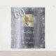 Uma tapeçaria de boas-vindas para uma festa de 60 anos glamourosa. Um fundo metálico prateado falso decorado com pó glitter falso. Personalize e adicione uma foto de alta qualidade, nome e data. O número 60 é escrito com uma fonte estilo balão.