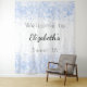 Uma tapeçaria de boas-vindas para uma festa de 16 anos doce e glamorosa para meninas. Um fundo metálico prateado falso decorado com gotas de glitter azul falso. Personalize e adicione um nome e idade. Letras pretas.
