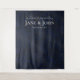 Elegante bem-vinda ao nosso cenário de casamento, com um sofisticado padrão de impressão do leopardo preto sobre fundo azul escuro. Tipografia de prata para detalhes do casamento, incluindo introdução de boas-vindas, nomes de recém-casados e data do casamento. Criado para o casal ousado, na moda, feroz e ousado que ama grandes felinos, especialmente umas e panteras.