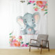 Tapeçaria de Berçário de Elefante Floral Rosa (Editar)