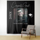 Celebrate your graduate in style with this personalized graduation photo backdrop, designed to create the perfect focal point for any graduation party. Featuring a modern black background, elegant typography, and a custom photo, name, year, and school, this backdrop adds a polished and memorable touch to your celebration.