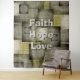 Cores De Queda Bloqueiam A Tapeçaria Do Véu. Lindos padrões modernos e contemporâneos, Autumn Grays e blocos coloridos verdes. Coloque o palco para a estação. Mantenha a citação "Fé, Esperança, Amor" ou adicione sua própria frase ou monograma.