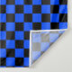 A blue and black checkerboard pattern fills the image, creating a uniform, alternating grid of squares, conveying a bold and geometric feel.