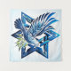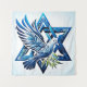 Esta peça impressionante apresenta uma pomba graciosa em voo de médio, suas asas se espalham e um vibrante galho verde de oliveira simbolizando a esperança. A pomba, renderizada em tons brancos e azuis, contrasta lindamente com o pano de fundo de uma ousada Estrela azul de David, que captura o olho e o coração com sua profundidade e significado.