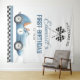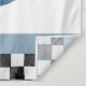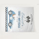 This fun 1st birthday party backdrop features a vintage blue race car and chequered flags. Designed by Thisisnotme©
