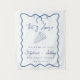 This design features a crisp white background accented by a playful wavy blue border for a soft, eye-catching frame. At the top, a delicate blue bow illustration adds a charming decorative detail. The phrase “That’s Amore” is displayed in elegant blue lettering, paired with a whimsical pizza slice graphic for a fun, celebratory touch. The couple’s names and event date appear below in coordinating blue text, creating a cohesive and polished look that blends romantic wedding style with a lighthearted pizza theme — perfect for welcoming guests in a charming and memorable way.