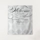 Tapeçaria de parede de Boas-vindas de 25º Aniversário com texto de roteiro preto chique sobre o fundo de painel de diamante de prata FAUX (que pode ser removido para um fundo simples no modo de edição avançada). A palavra "Boas-vindas" é uma IMAGEM impressa em tinta plana e não pode ser editada. Todo o restante do texto pode ser totalmente editado. Escolha seu tamanho e personalize o texto, ou clique em "Personalizar ainda mais" para alterar a cor do fundo e o tamanho ou estilo da fonte.