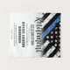 Este design apresenta uma bandeira da polícia com listras pretas e brancas, e uma fina faixa azul de linha também. "Celebração de aposentadoria" fica acima de todos os detalhes partidários para a polícia aposentada, xerife, capitão ou comemoração de aposentadoria do chefe.