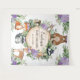 Este design exclusivo apresenta um grupo de adoráveis animais da floresta, lindas flores lavanda e exuberante verde aquarela. Personalize o fundo com seu próprio texto clicando no botão "personalizar".