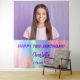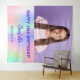Uma tapeçaria para uma festa de aniversário de 18º (ou qualquer idade). Um fundo holográfico em verde roxo, rosa e menta. Personalize e adicione sua própria foto de alta qualidade da aniversariante. O texto: O nome em roxo com um moderno script de estilo escrito à mão. Tempates por um nome e uma data. Pode ser usado como decor de parede para a festa ou como pano de fundo da cabine de fotos.