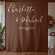 Add a touch of bohemian charm to your wedding decor with our Boho Brown Script Minimalist Wedding Backdrop. This stylish backdrop can be customized with the names of the bride and groom and the date of your wedding, making it a special and unique piece for your big day.