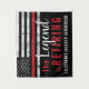 Este design apresenta uma bandeira de bombeiros com faixas pretas e brancas, e uma fina faixa vermelha de linha também. O texto "A lenda está se aposentando" fica acima do nome do bombeiro polícia, tenente ou chefe. Celebre em estilo com este pano de fundo de banner de excelente do qual você pode tirar fotos na frente!