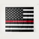 Esta tapeçaria que pode ser usada como pano de fundo fotográfico para ocasiões especiais como aposentadoria de bombeiros ou festas de aniversário, apresenta uma fina linha vermelha de bombeiro preto e branco bandeira americana junto com o nome de um oficial para você personalizar. Projetado pelo artista mundialmente famoso ©Tim Coffey.