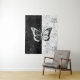 Linda tapeçaria com borboleta branca e negra.