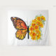 Borboleta de monarca laranja com asa decorada com papoila amarela e vibrante da Califórnia em fundo branco.