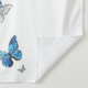 Borboletas azuis voadoras morfo e borboletas brancas em um fundo de abstrato leve. Morpho. Design com borboletas azuis morfo.
